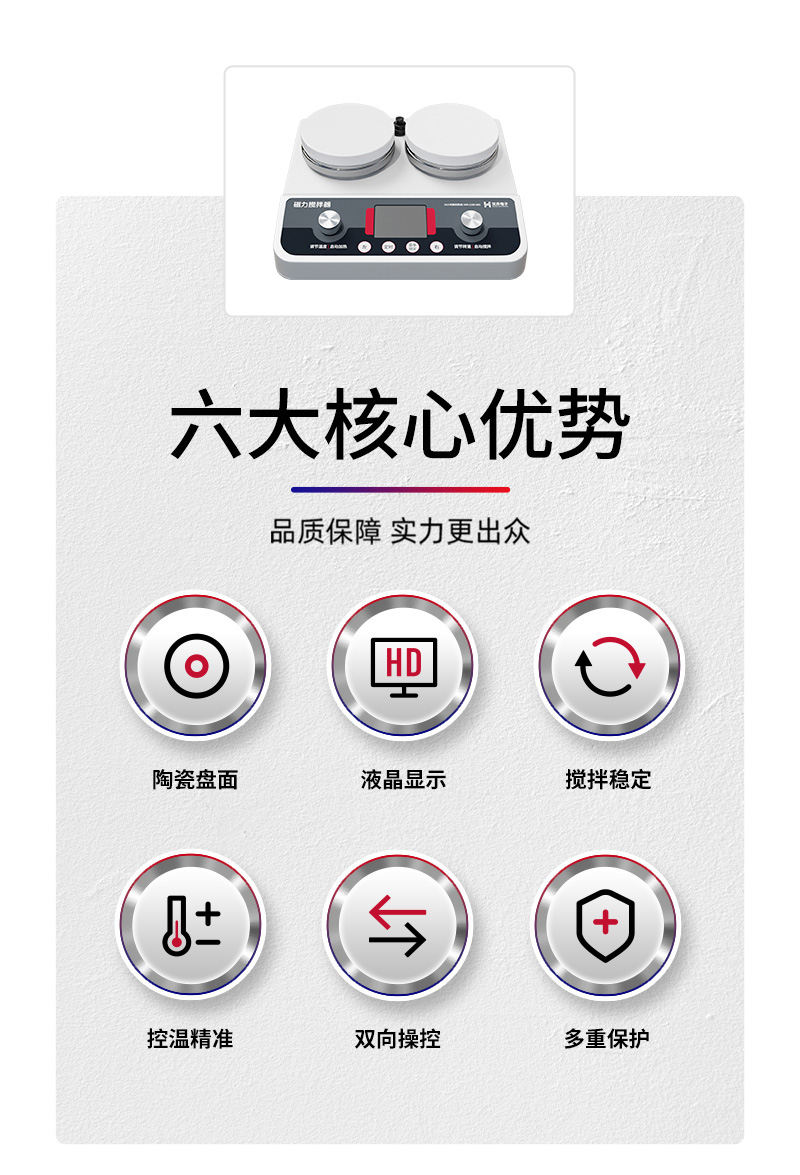 应用领域广泛,可深度适配科研院校、环境检测、医药研发、化工行业、食品检测及高校教学等场景,满足各领域对样品精密加热与搅拌的核心需求。