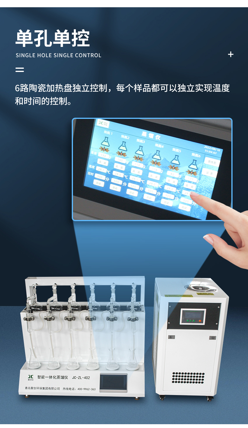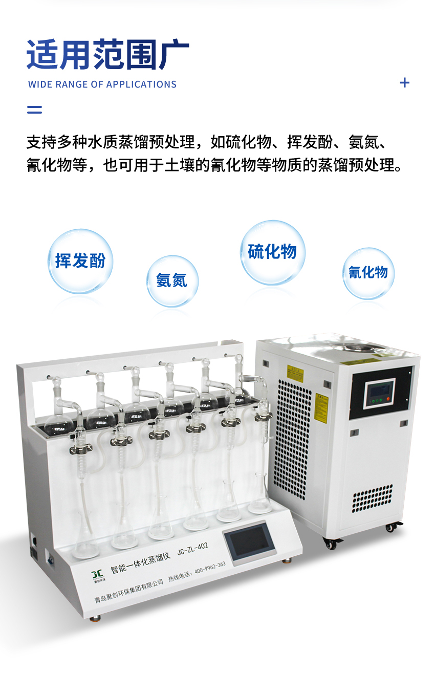 本产品在传统仪器基础上融入独特设计理念,具备加热均匀、体积控制蒸馏终点、防倒吸、冷却水循环降温及回流装置等技术。智能一体化蒸馏仪实现了操作简单、美观实用、节能降耗等目的,可广泛用于环保、食品检测、疾控、供排水、高校、科研院所、厂矿企业等各化验室需要蒸馏处理的场所。