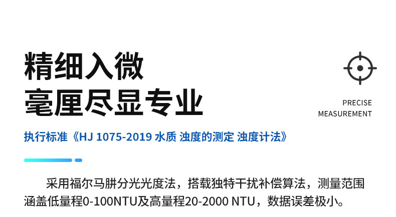 1.测量范围:低量程0-100NTU,高量程20-2000 NTU;