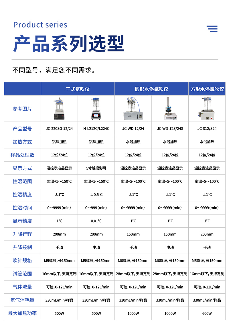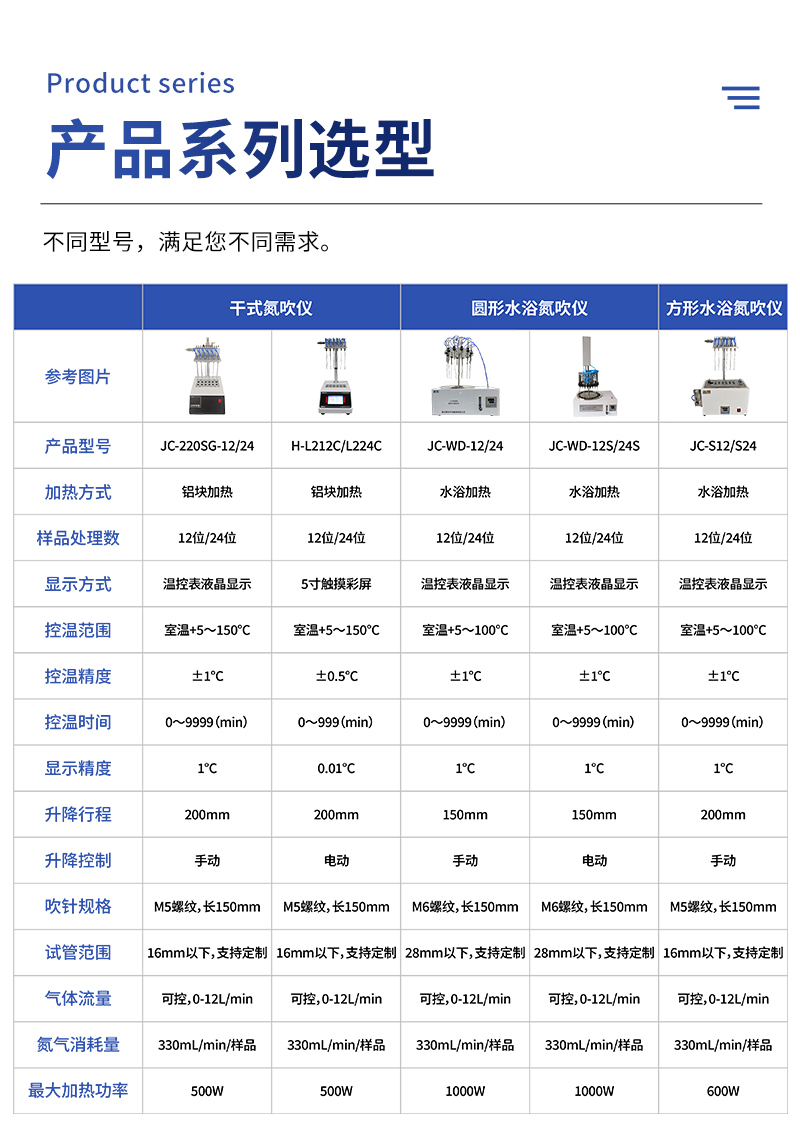1)12位处理:JC-220A可视(可以观察试管内的样品液面,方便实验)、JC-220C-12、JC-S12、JC-WD-12、JC-WD-12S、JC-D12。