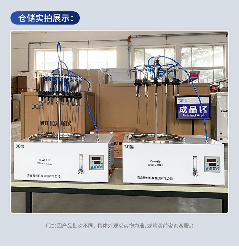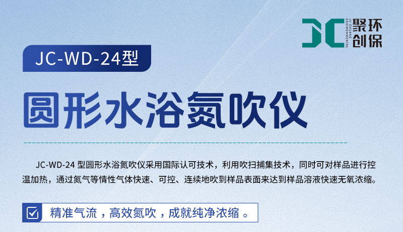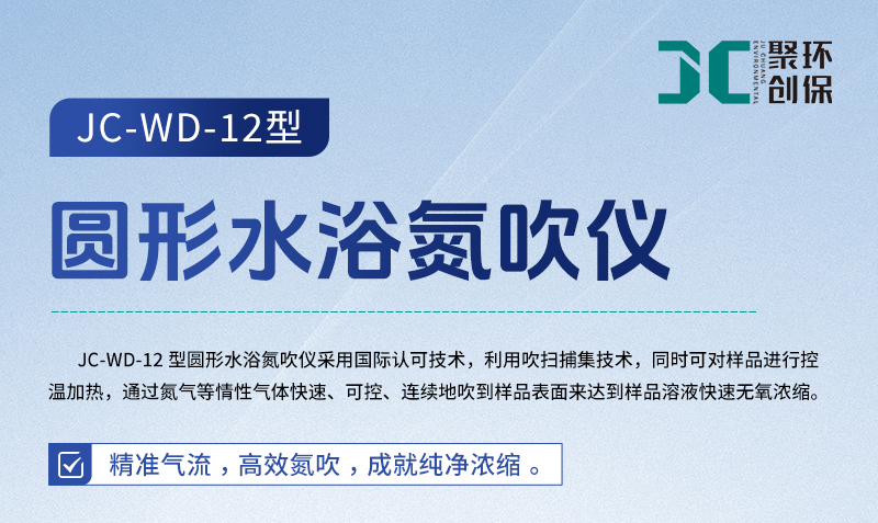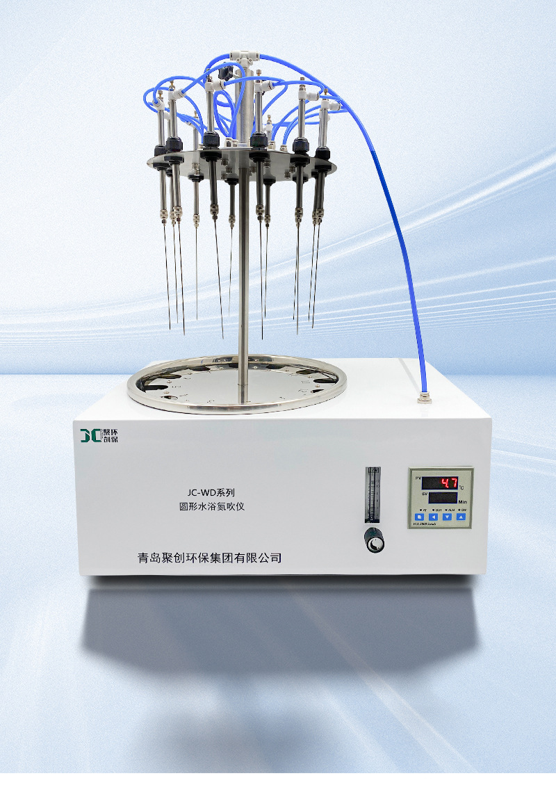 聚创JC-WD系列氮吹仪采用水浴恒温加热的方式,将氮气快速、连续、可控地吹入加热的样品表面从而将样品进行浓缩,这种方法省时、操作方便、容易控制,主要用于色谱、质谱等分析样品的纯化和制备,广泛应用于农残分析、环境分析、制药药检、生物分析、商品检验、食品饮料等领域,通过加快水、甲苯、甲醇、丙酮等溶剂的挥发,省时、省力、快速浓缩获得样品。